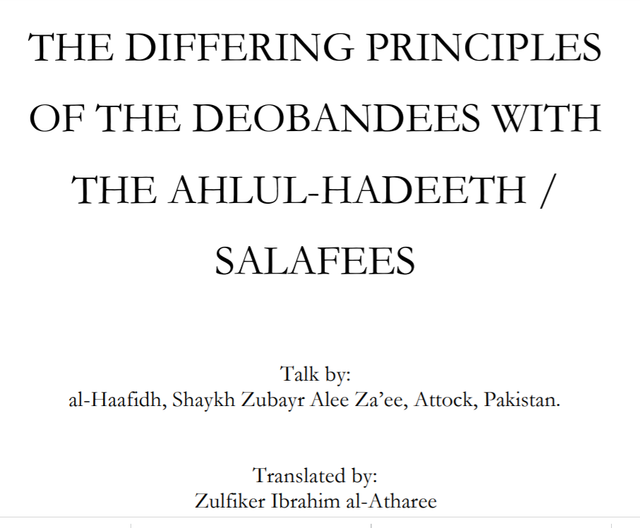 The Differing Principles of the Deobandee and Ahlul Hadeeth – Shaikh Zubair Alee Za’ee